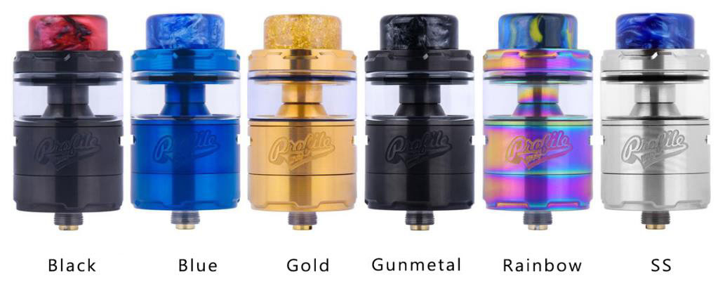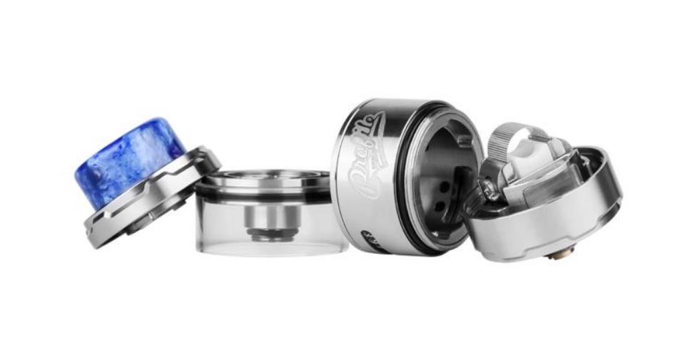 El Profile Unity RTA de Wotofo es un tanque con una resistencia de malla que ofrece la opción de instalar una resistencia tradicional. Tiene un flujo de aire superior ajustable y una tapa superior.